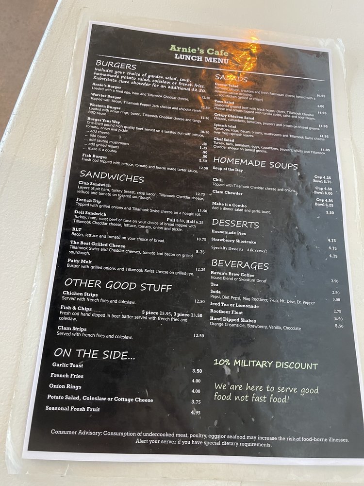 Discover the heartwarming comfort of Arnie's Cafe, where American breakfast and brunch favorites bring a smile with every bite. Located in the bustling Warrenton, Oregon, this beloved spot is a haven for food lovers seeking hearty, delicious meals. Arnie’s menu shines with crowd-pleasers like the homemade corned beef hash, perfectly crispy hash browns, and Tillamook omelets, ensuring something irresistible for every palate.